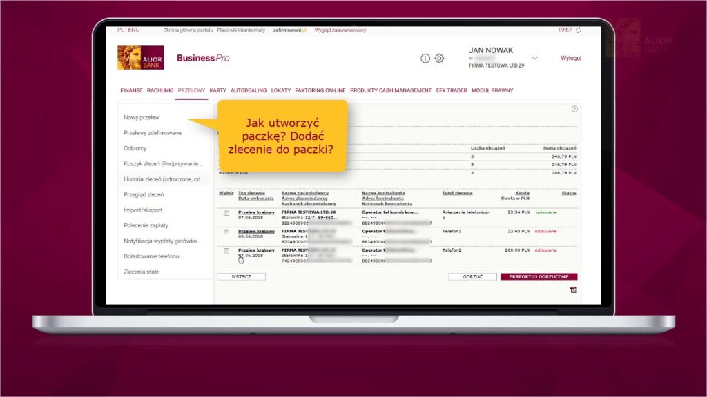 Bankowość internetowa Alior Banku oferuje szeroki wachlarz funkcji, które pokrywają większość potrzeb klientów indywidualnych i firmowych. Można w niej m.in. przeprowadzać przelewy krajowe i zagraniczne, zarządzać limitami kredytowymi, konfigurować autoodbiorców, prowadzić inwestycje czy korzystać z kredytów online. Platforma umożliwia również podgląd i pobieranie wyciągów, analizę wydatków oraz korzystanie z poczty bankowej. Wszystkie operacje są chronione zaawansowanym systemem uwierzytelniania, co czyni bankowość internetową zarówno efektywną, jak i niezawodną.