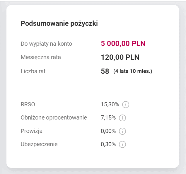 | Okres spłaty | Od 6 do 72 miesięcy |