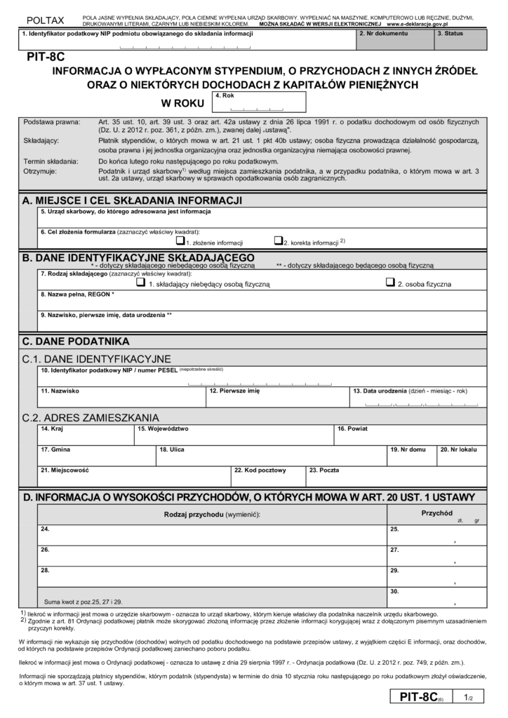 | Złożenie PIT-8C | Do 30 kwietnia | Portal Podatkowy lub urzędy skarbowe |