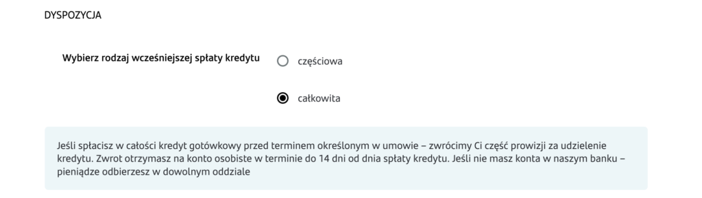 Prawo do wcześniejszego spłacenia Zgodnie z ustawą o kredycie konsumenckim, klient ma prawo do wcześniejszego spłacenia w dowolnym momencie.