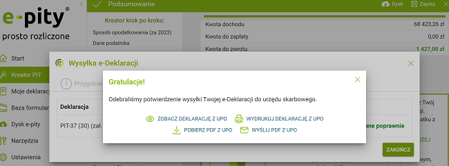 Innym sposobem jest skorzystanie z programów podatkowych dostępnych bezpłatnie na stronie Ministerstwa Finansów. Po wypełnieniu, deklarację można wysłać online. Każdy sposób złożenia musi być potwierdzony, a odbiór potwierdzenia kończy proces składania.