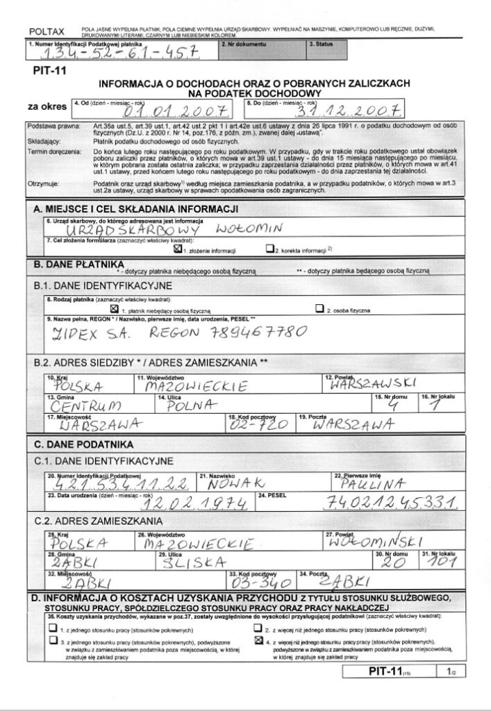 Kim jest podatnik zobowiązany do złożenia PIT 11?