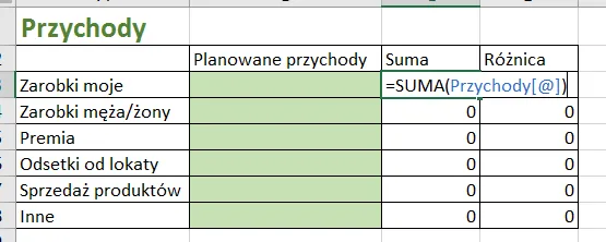 | Przychody | 8 000 | Dodaj wszystkie źródła, np. pensję, dodatkowe zarobki, renty |