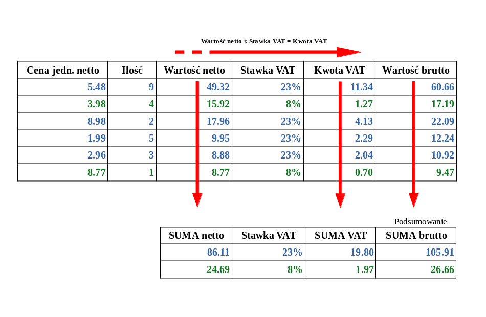 Czy obliczanie VAT 23% z brutto różni się od obliczania z netto?