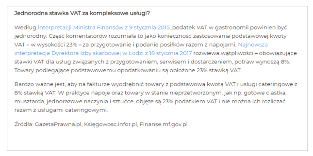 | Usługi hotelarskie | 8% | Obniżona stawka dla usług turystycznych |