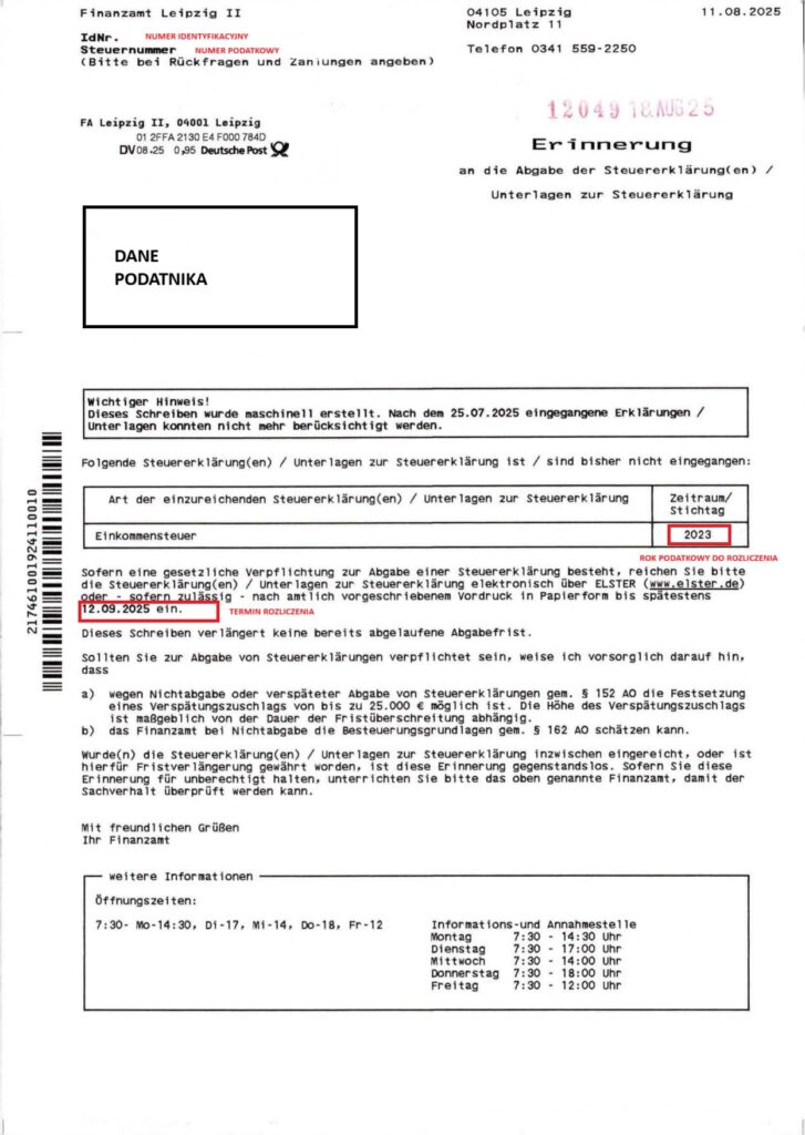 1. Obowiązek składania deklaracji podatkowej w Niemczech